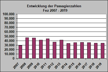 | Passagierzahlen auf der Strecke Hahn - Fez - Hahn | ||||||||||||||||||||