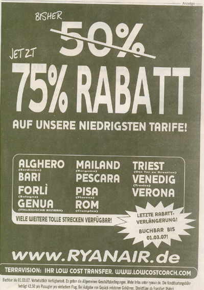 Es erklärt auch, warum es sich lohnt, bspw. aus der Schweiz, aus Oberbayern, aus Ostholstein oder Frankfurt-Oder zum Flugplatz Hahn zu fahren, um von dort zu fliegen.